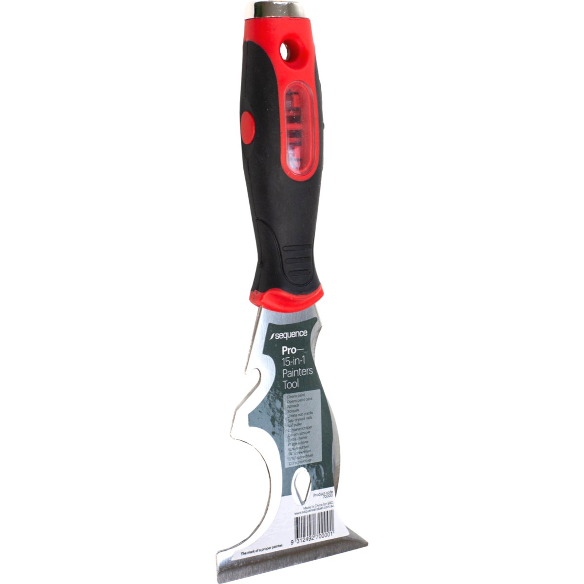 With a soft grip handle and durable stiff steel this tool: cleans paint, opens paint cans, scrapes, cleans out cracks, sets drywall nails, pulls nails, opens bottles, has 4 screwdrivers; and spreads with a straight, convex, and concave spreader.